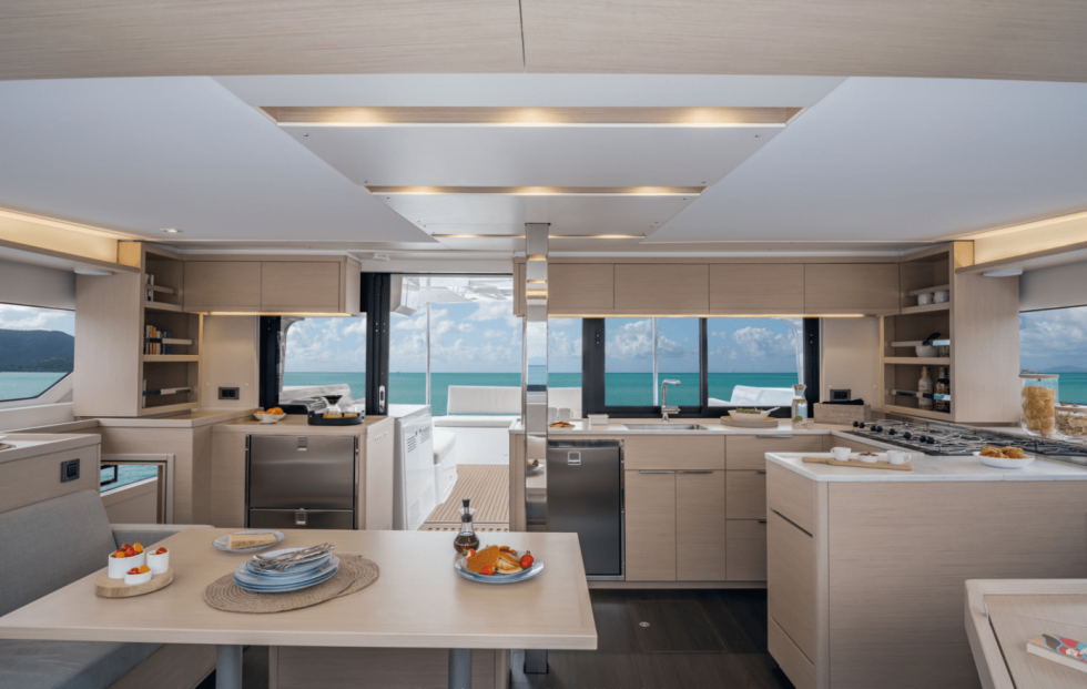 This Lagoon 42 excels in terms of accommodation, deck areas, facilities, and performance, with a more elegant cabin-top and interior design, saloon and cabins exceptionally well lit, natural light in-cabin with glazed panels on hulls, comfortable and luxurious cabins, large sunbathing area on the cabin-top, easiest access to the sail areas, integrated large helm station seat, access from the cockpit and the deck, extra safety system and more.